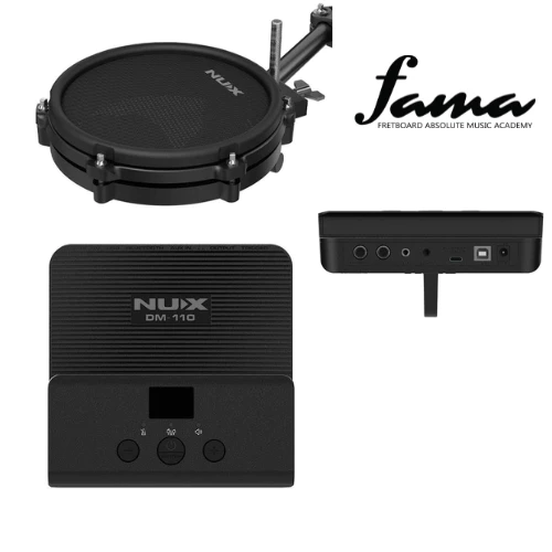The DM-110 is a high-performance, entry-level portable digital drum kit from the NUX series. It features a sleek metal frame and compact drum pads and cymbals, delivering exceptional functionality and performance without compromise.