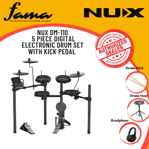 NUX DM-110 5 Piece Digital Electronic Drum Set With Kick Pedal Package (DM110 DM1)